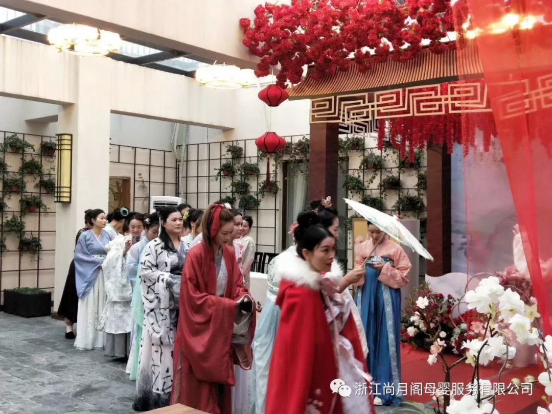 2019年1月28日12時,浙江尚月閣國際月子中心攜手九雅女人,開展了首屆“”夢回大唐“”的唐裝盛宴。贊助單位有:金華市金東區(qū)青創(chuàng)創(chuàng)業(yè)俱樂部、美齡媽咪、又見江南雨共享酒店、艾菲爾時尚婚禮策劃、麥吉麗譚紅梅閨蜜贊隊、余筠影攝影工作室、正如傳媒、金華宜安自動化科技、恒茂金融、大堰河我的保姆有限公司。