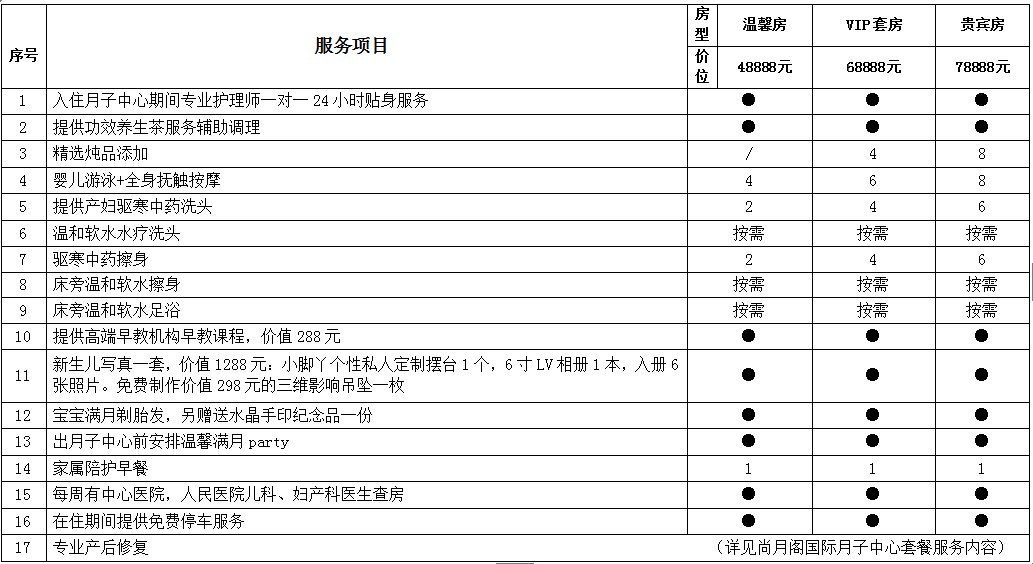 尚月閣月子中心套餐服務(wù)內(nèi)容