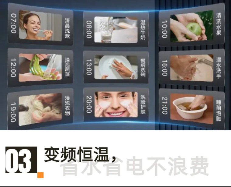 無儲水箱的設計,依托大功率穩(wěn)定輸出即時熱水。加熱過程一氣呵成,無需提前預熱,更無需二次加熱保溫。有效提高熱水輸出,省電節(jié)能。
